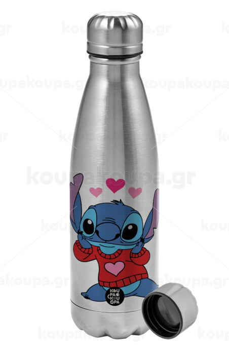 Stitch heart, Μεταλλικό παγούρι νερού, ανοξείδωτο ατσάλι, 750ml