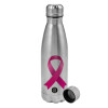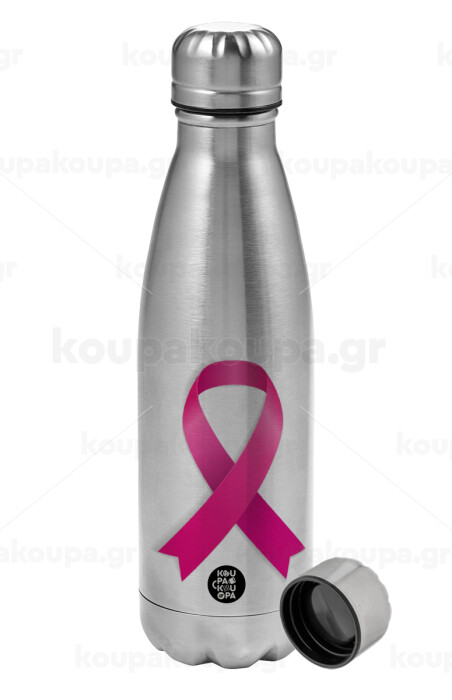 Παγκόσμια Ημέρα κατά του Καρκίνου, Μεταλλικό παγούρι νερού, ανοξείδωτο ατσάλι, 750ml