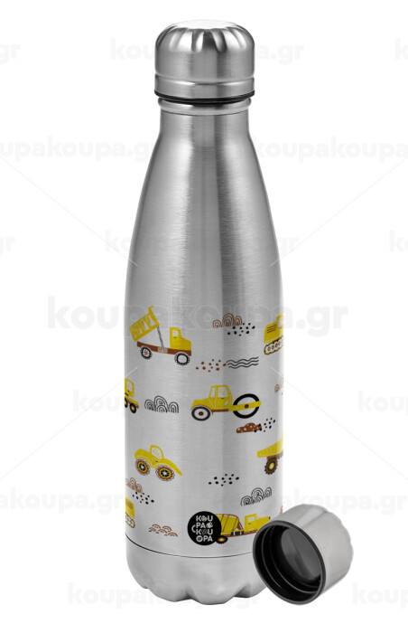 Αμαξάκια φορτωτές και μπουλντόζες, Μεταλλικό παγούρι νερού, ανοξείδωτο ατσάλι, 750ml