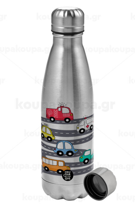 Hand drawn childish set with cars, Μεταλλικό παγούρι νερού, ανοξείδωτο ατσάλι, 750ml