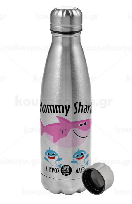Mommy Shark (με ονόματα παιδικά), Μεταλλικό παγούρι νερού, ανοξείδωτο ατσάλι, 750ml