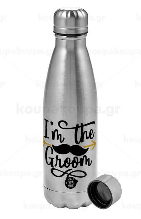 I'm the groom mustache, Μεταλλικό παγούρι νερού, ανοξείδωτο ατσάλι, 750ml