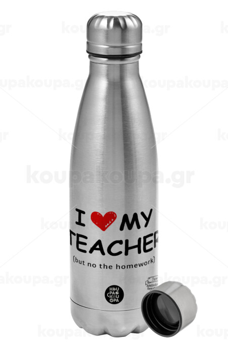 i love my teacher but no the homework, Μεταλλικό παγούρι νερού, ανοξείδωτο ατσάλι, 750ml