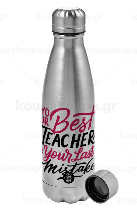 Typography quotes your best teacher is your last mistake, Μεταλλικό παγούρι νερού, ανοξείδωτο ατσάλι, 750ml
