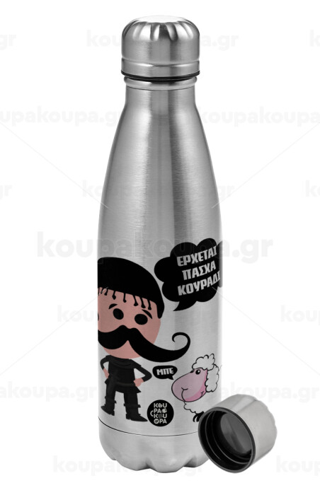 Κρητικός "Έρχεται Πάσχα κουράδι", Μεταλλικό παγούρι νερού, ανοξείδωτο ατσάλι, 750ml