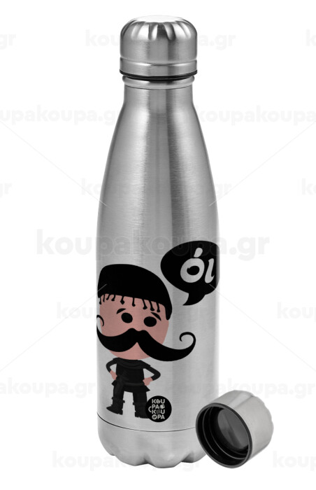 Κρητικός "Οι", Μεταλλικό παγούρι νερού, ανοξείδωτο ατσάλι, 750ml