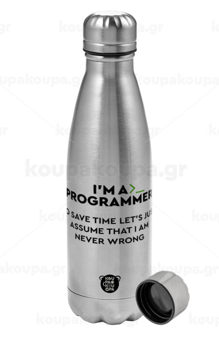 I’m a programmer Save time, Μεταλλικό παγούρι νερού, ανοξείδωτο ατσάλι, 750ml