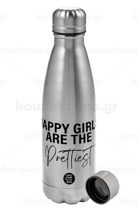 Happy girls are the prettiest, Μεταλλικό παγούρι νερού, ανοξείδωτο ατσάλι, 750ml