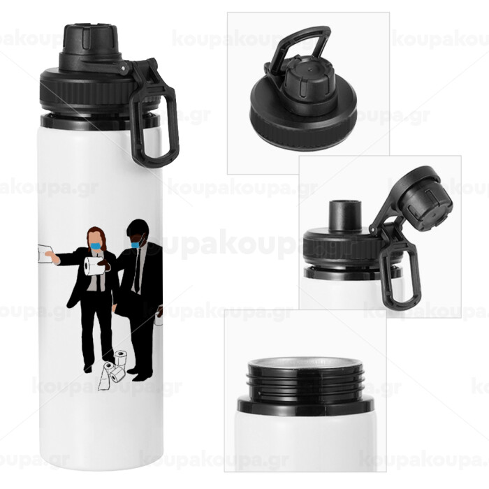 Pulp Fiction 3 meter away, Μεταλλικό παγούρι νερού με καπάκι ασφαλείας, αλουμινίου 850ml