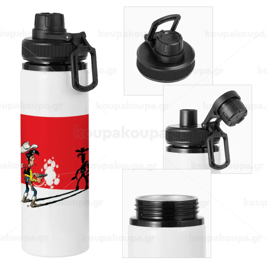 Λούκυ Λουκ σκιές, Μεταλλικό παγούρι νερού με καπάκι ασφαλείας, αλουμινίου 850ml