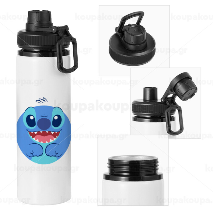 Lilo & Stitch blue, Μεταλλικό παγούρι νερού με καπάκι ασφαλείας, αλουμινίου 850ml