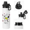 Snoopy Love, Μεταλλικό παγούρι νερού με καπάκι ασφαλείας, αλουμινίου 850ml