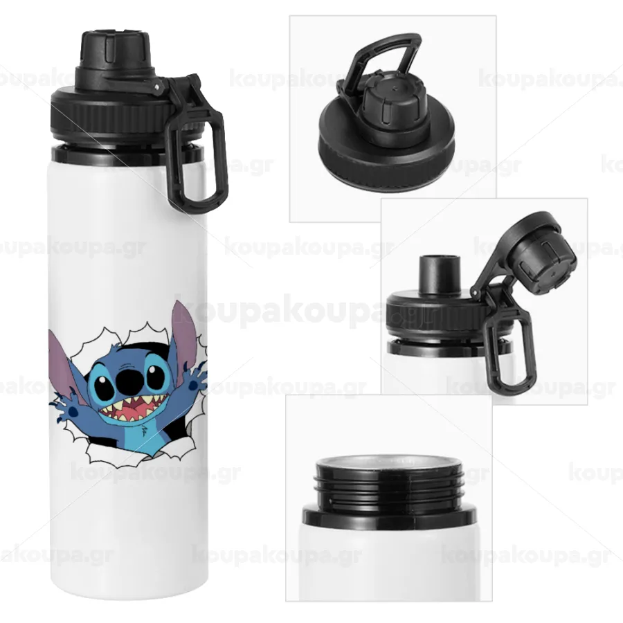 Stitch hello!!!, Μεταλλικό παγούρι νερού με καπάκι ασφαλείας, αλουμινίου 850ml