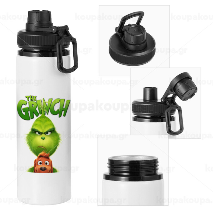 mr grinch, Μεταλλικό παγούρι νερού με καπάκι ασφαλείας, αλουμινίου 850ml