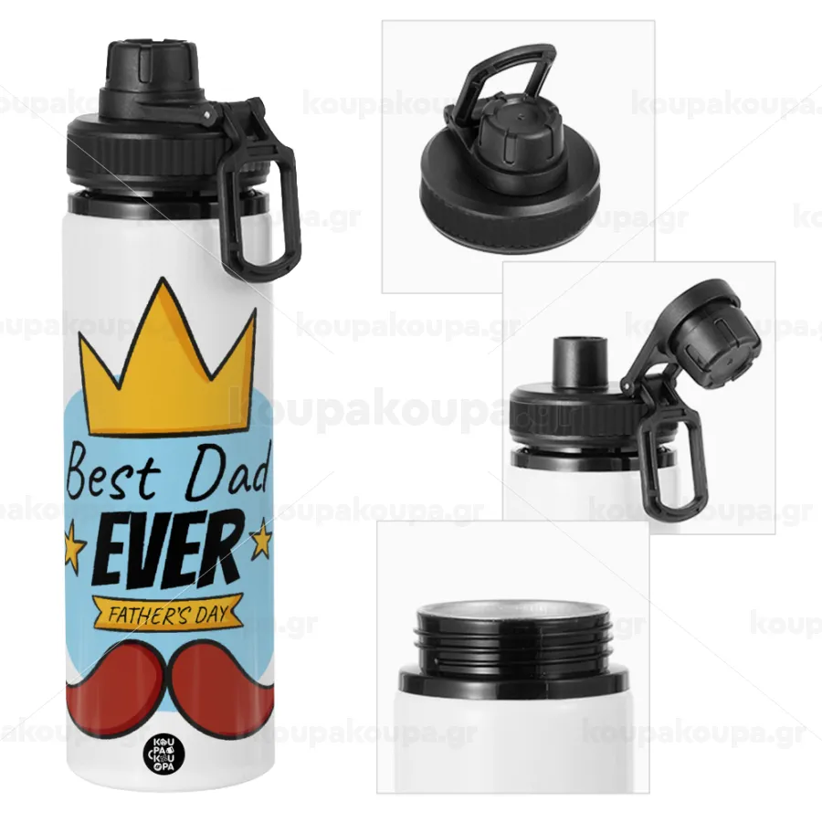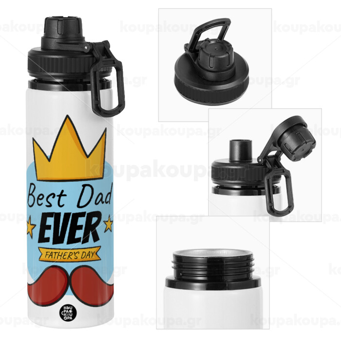 King, Best dad ever, Μεταλλικό παγούρι νερού με καπάκι ασφαλείας, αλουμινίου 850ml