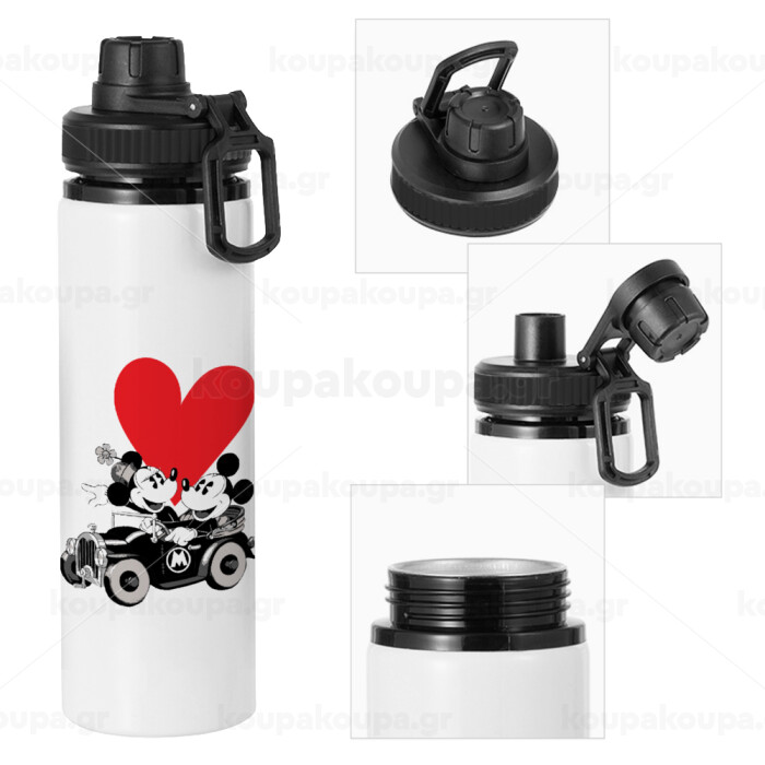 Mickey & Minnie love car, Μεταλλικό παγούρι νερού με καπάκι ασφαλείας, αλουμινίου 850ml