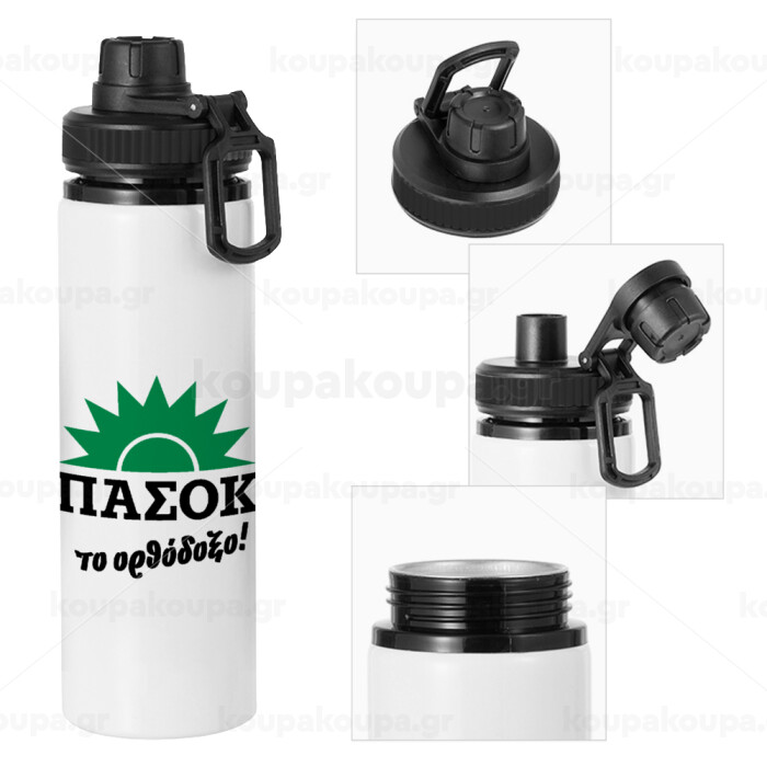 ΠΑΣΟΚ το ορθόδοξο, Μεταλλικό παγούρι νερού με καπάκι ασφαλείας, αλουμινίου 850ml