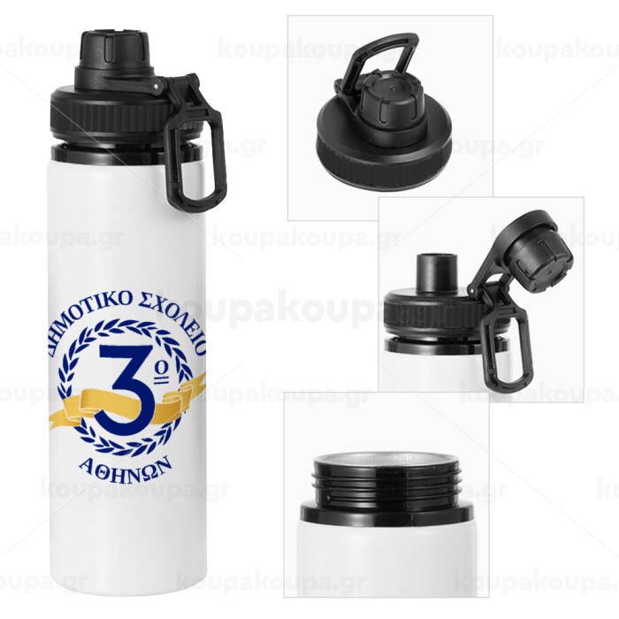 Έμβλημα Σχολικό μπλε, Μεταλλικό παγούρι νερού με καπάκι ασφαλείας, αλουμινίου 850ml