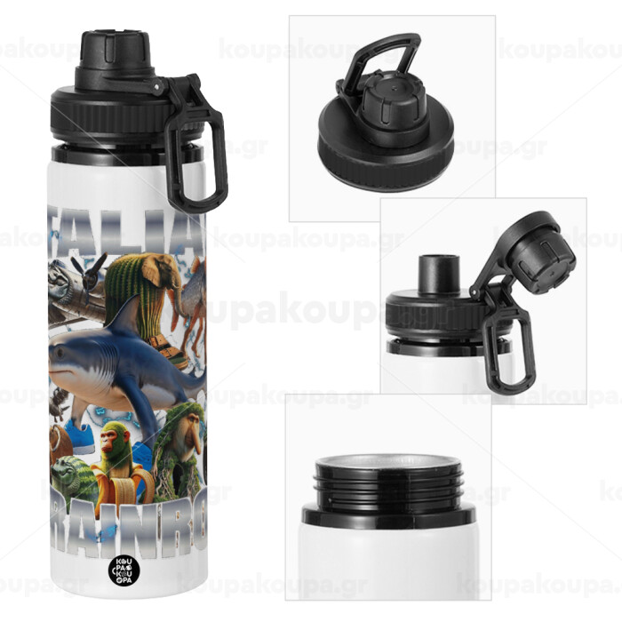 Italian Brainrot, Μεταλλικό παγούρι νερού με καπάκι ασφαλείας, αλουμινίου 850ml