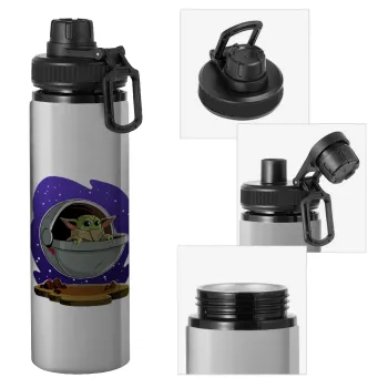 Baby Yoda mandalorian, Μεταλλικό παγούρι νερού με καπάκι ασφαλείας, αλουμινίου 850ml