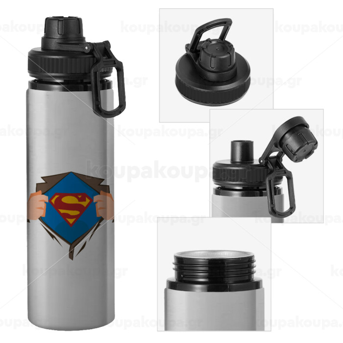 Superman hands, Μεταλλικό παγούρι νερού με καπάκι ασφαλείας, αλουμινίου 850ml