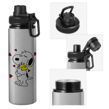 Snoopy Love, Μεταλλικό παγούρι νερού με καπάκι ασφαλείας, αλουμινίου 850ml
