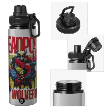 Superhero Deadpool Wolverine, Μεταλλικό παγούρι νερού με καπάκι ασφαλείας, αλουμινίου 850ml