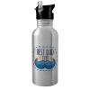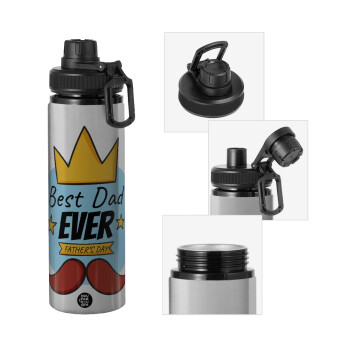 Best dad ever μπλε μουστάκι, Μεταλλικό παγούρι νερού με καπάκι ασφαλείας, αλουμινίου 850ml