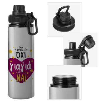 Όταν οι γονείς λένε ΟΧΙ, η γιαγιά λέει ΝΑΙ, Μεταλλικό παγούρι νερού με καπάκι ασφαλείας, αλουμινίου 850ml