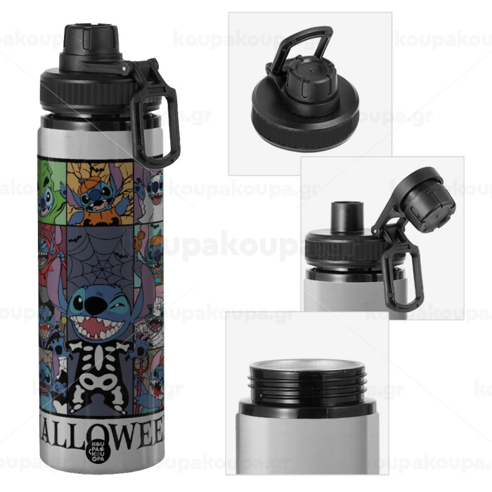 Stitch Halloween, Μεταλλικό παγούρι νερού με καπάκι ασφαλείας, αλουμινίου 850ml