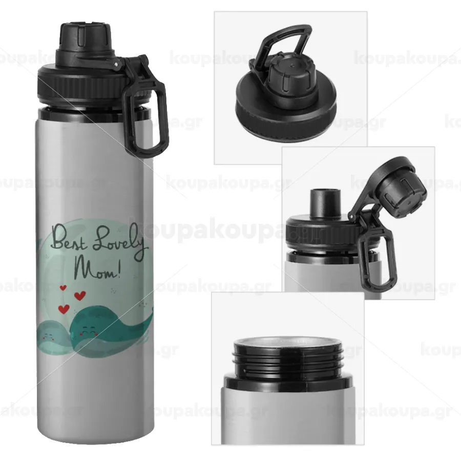 Mothers Day, whales, Μεταλλικό παγούρι νερού με καπάκι ασφαλείας, αλουμινίου 850ml