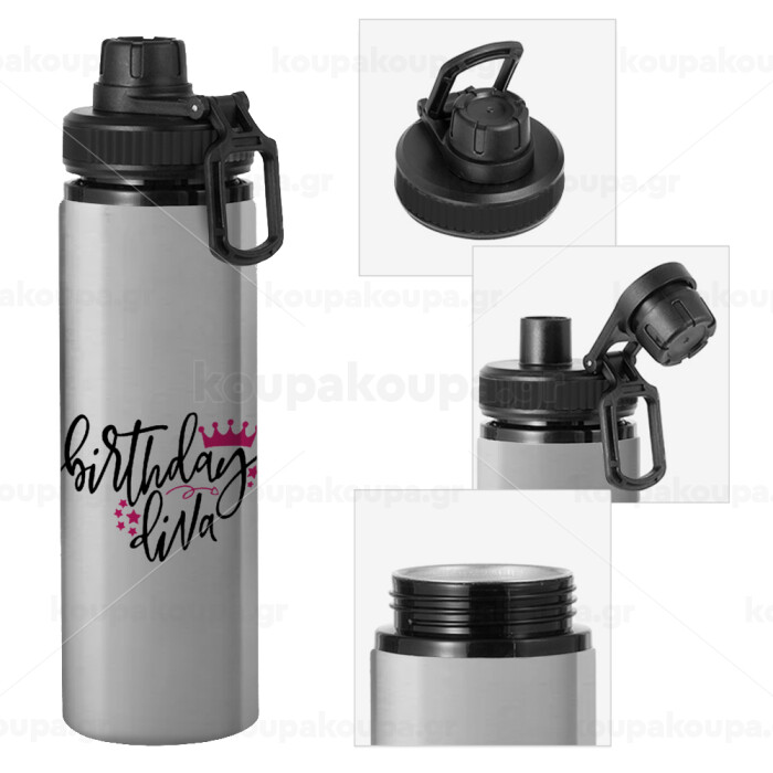 Birthday Diva queen, Μεταλλικό παγούρι νερού με καπάκι ασφαλείας, αλουμινίου 850ml