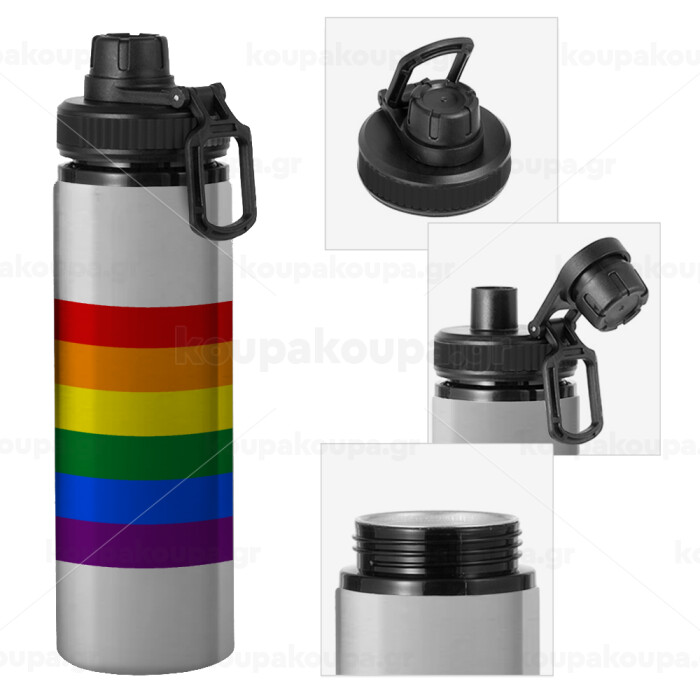 Rainbow flag (LGBT) , Μεταλλικό παγούρι νερού με καπάκι ασφαλείας, αλουμινίου 850ml
