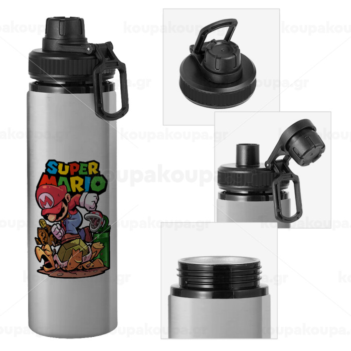 Super mario Jump, Μεταλλικό παγούρι νερού με καπάκι ασφαλείας, αλουμινίου 850ml