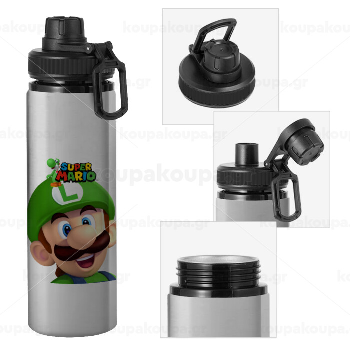 Super mario Luigi, Μεταλλικό παγούρι νερού με καπάκι ασφαλείας, αλουμινίου 850ml