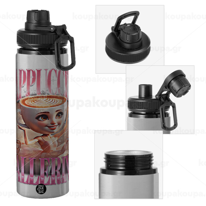 BALLERINA CAPUCHINA FUNK, Μεταλλικό παγούρι νερού με καπάκι ασφαλείας, αλουμινίου 850ml