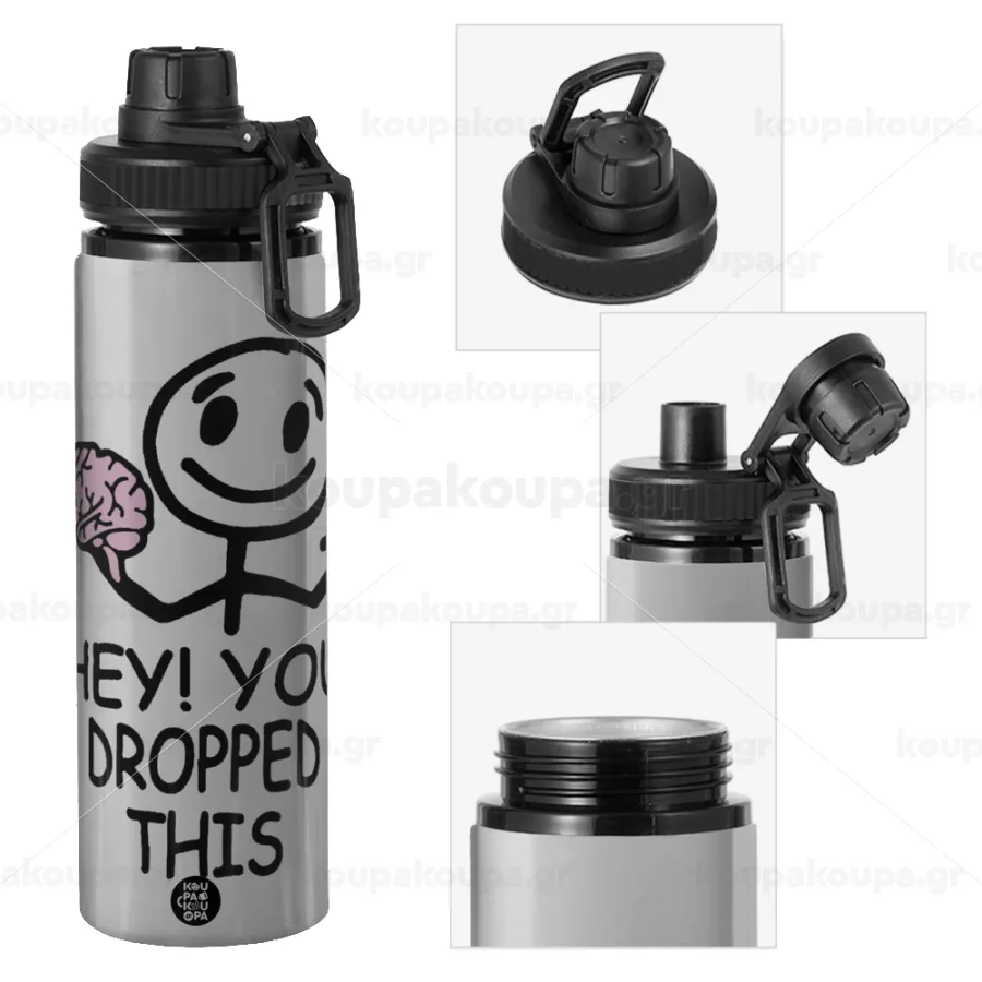 Hey! You dropped this, Μεταλλικό παγούρι νερού με καπάκι ασφαλείας, αλουμινίου 850ml