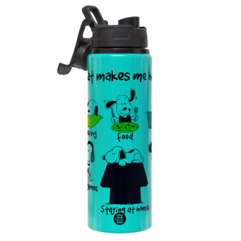 Snoopy what makes my happy, Μεταλλικό παγούρι νερού με καπάκι ασφαλείας, αλουμινίου 850ml