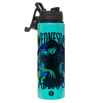 Wednesday Jenna Ortega, Μεταλλικό παγούρι νερού με καπάκι ασφαλείας, αλουμινίου 850ml