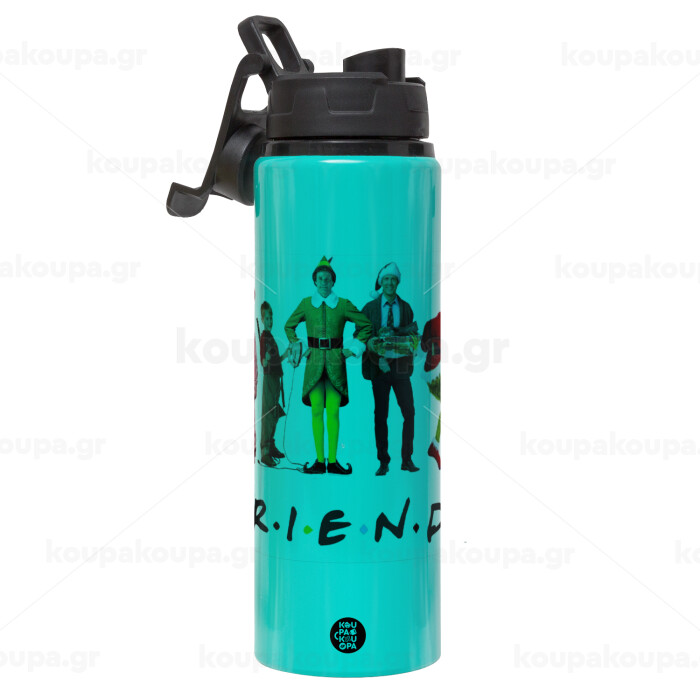 Christmas FRIENDS, Μεταλλικό παγούρι νερού με καπάκι ασφαλείας, αλουμινίου 850ml