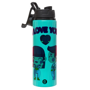 Couple, I love you, Μεταλλικό παγούρι νερού με καπάκι ασφαλείας, αλουμινίου 850ml