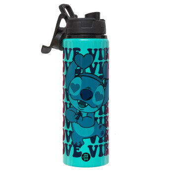 Lilo & Stitch Love vibes, Μεταλλικό παγούρι νερού με καπάκι ασφαλείας, αλουμινίου 850ml
