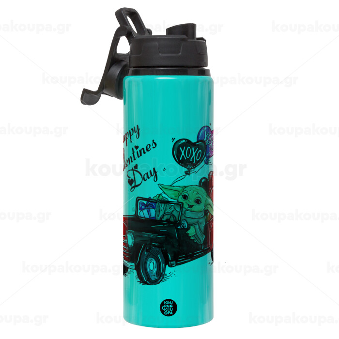 Yoda, happy valentines day (xoxo), Μεταλλικό παγούρι νερού με καπάκι ασφαλείας, αλουμινίου 850ml