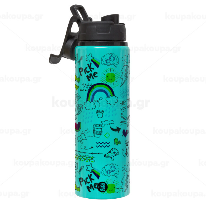Doodle kids, Μεταλλικό παγούρι νερού με καπάκι ασφαλείας, αλουμινίου 850ml