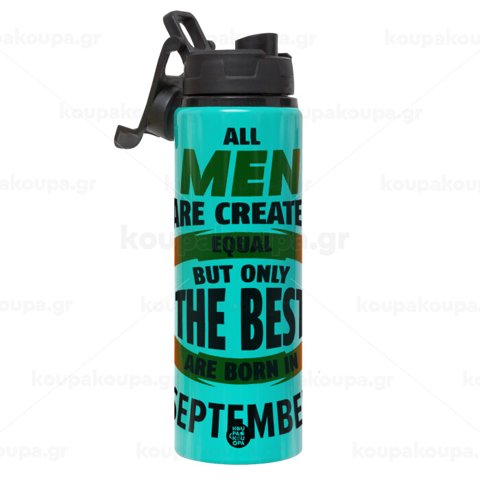 All men are created equal but only the best are born in September, Μεταλλικό παγούρι νερού με καπάκι ασφαλείας, αλουμινίου 850ml