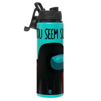 Among US, you seem sus, Μεταλλικό παγούρι νερού με καπάκι ασφαλείας, αλουμινίου 850ml