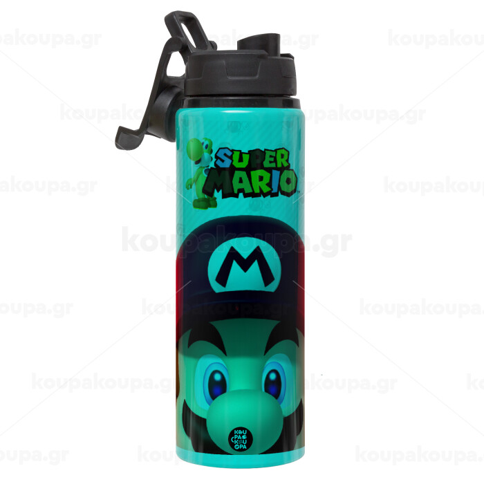 Super mario, Μεταλλικό παγούρι νερού με καπάκι ασφαλείας, αλουμινίου 850ml