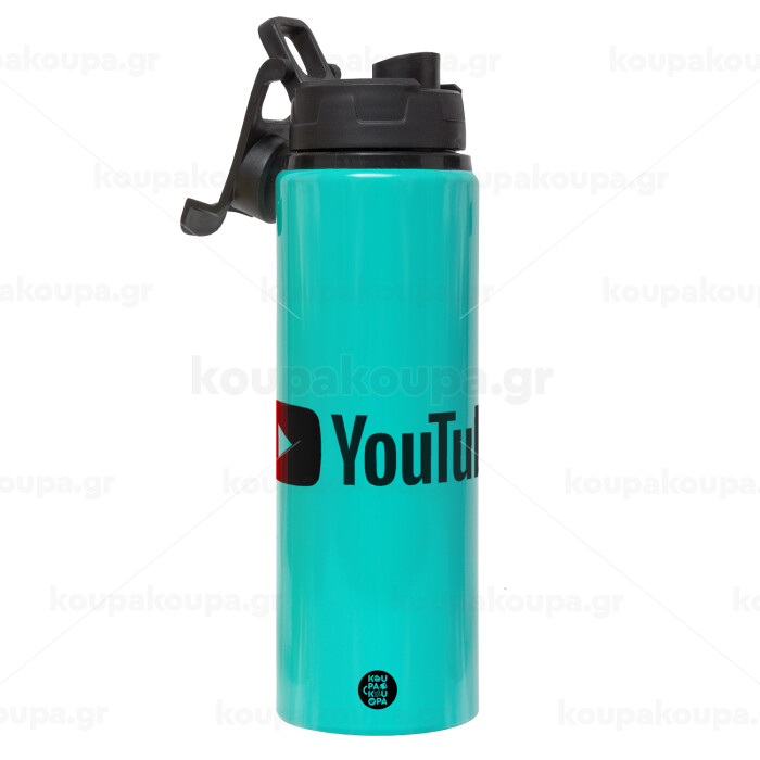 Youtube, Μεταλλικό παγούρι νερού με καπάκι ασφαλείας, αλουμινίου 850ml