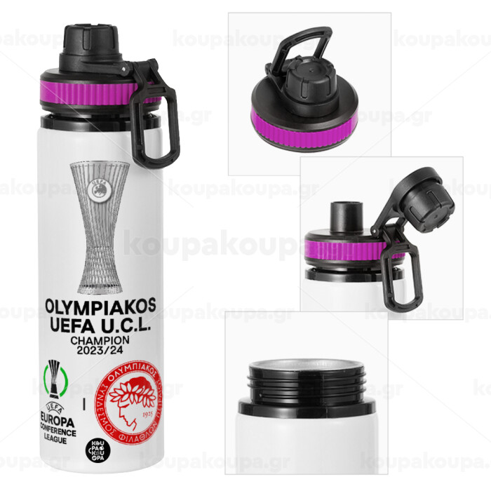Ολυμπιακός νικητής UEFA Europa Conference League Champion 2023/24, Μεταλλικό παγούρι νερού με καπάκι ασφαλείας, αλουμινίου 850ml