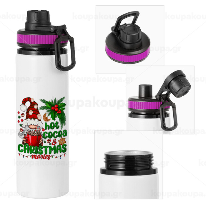 Hot cocoa and Christmas movies, Μεταλλικό παγούρι νερού με καπάκι ασφαλείας, αλουμινίου 850ml